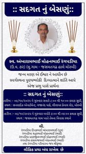 મોરબી નીવાસી અંબારામભાઈ રંગપડીયાનુ દુઃખદ અવસાન